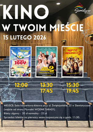 Po raz kolejny w niedzielę, 15 lutego 2026 roku, w sali koncertowo-kinowej przy ul. Świętojańskiej 25 odbędzie się dzień filmowy. Kino w Twoim Mieście zaprasza miłośników dobrego kina na seanse pełne emocji, humoru i niezapomnianych wrażeń – dla widzów w każdym wieku.