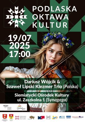 Na scenie w Siemiatyczach wystąpi zespół Dariusz Wójcik & Szaweł Lipski Klezmer Trio. To koncert pełen emocji, oparty na muzyce klezmerskiej – żydowskiej tradycji muzycznej pełnej improwizacji, melancholii i energii.