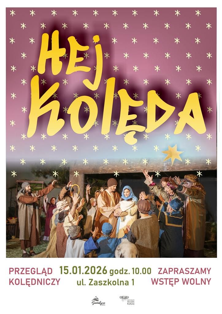 Siemiatycki Ośrodek Kultury zaprasza zespoły i grupy kolędnicze działające w Państwa placówce, na Przegląd Kolędniczy ph „Hej kolęda, kolęda…”, który odbędzie się: 15.01.2026r (czwartek) o godz. 10:00 *Celem Przeglądu jest: - Kontynuowanie tradycyjnego kolędowania osadzonego w tradycji lokalnej. - Ocena aktualnego stanu i artystycznego poziomu zespołów kolędujących zgodnie z tradycją. *W Przeglądzie mogą brać udział wszystkie formy kolędowania: z szopką, z gwiazdą, z konikiem, z kozą, herody, tradycyjne kolędy, pastorałki oraz Jasełka. *Czas prezentacji: