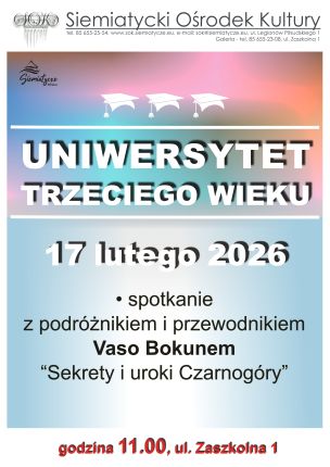 Serdecznie zapraszamy słuchaczy Uniwersytetu Trzeciego Wieku.