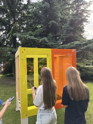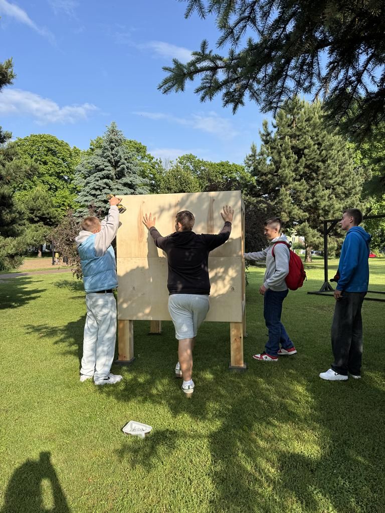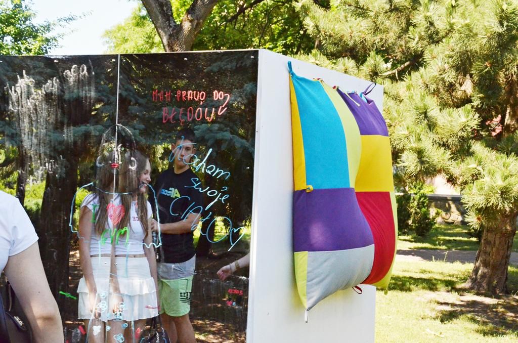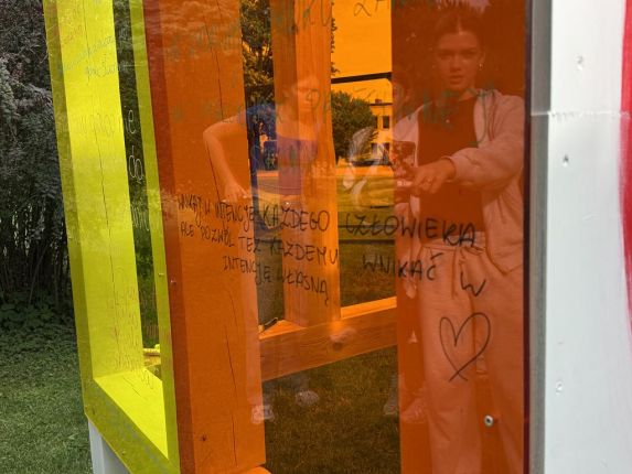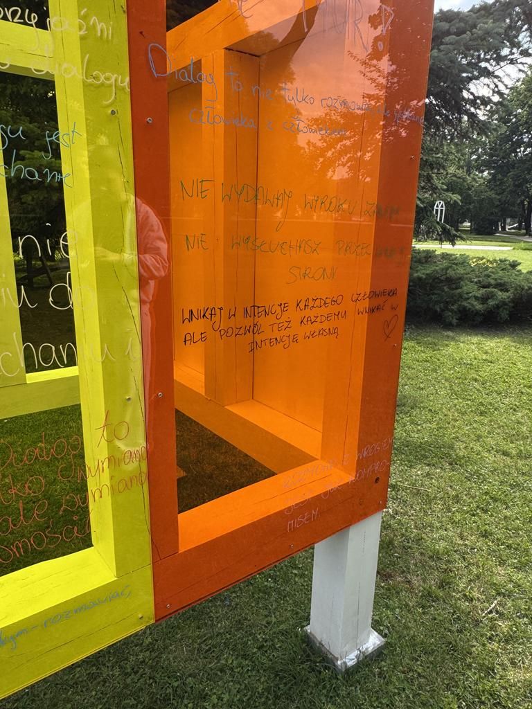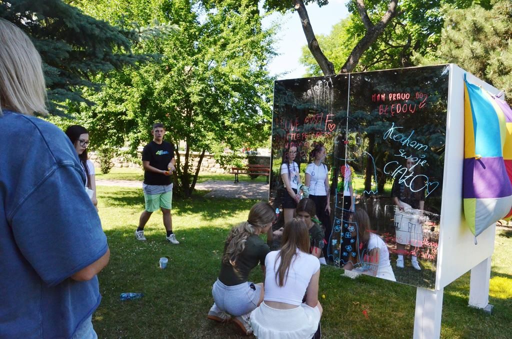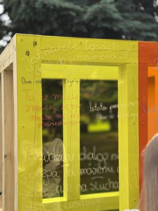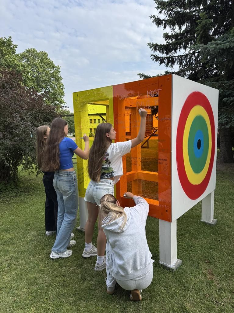 Po każdym spotkaniu młodzież pracowała warsztatowo w przestrzeni Parku Miejskiego, tworząc interaktywną instalację artystyczną „Emocje do kwadratu”. Składała się ona z czterech symbolicznych ścianek, odzwierciedlających tematy kolejnych zajęć: